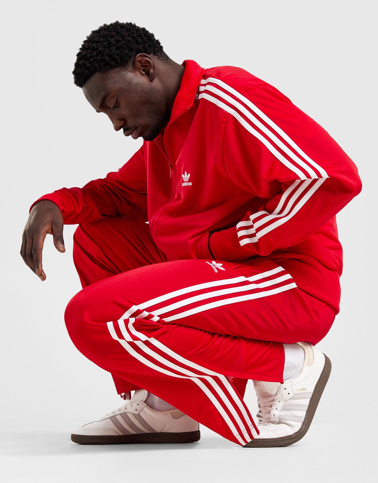 Istakni se u off-duty dane uz ove muške hlače Adicolor Classics Firebird iz serije adidas Originals. Široki donji dio trenirke u boji Better Scarlet izrađen je od glatkog recikliranog poliesterskog pletiva. Imaju podesivi struk s uzicom i rubove nogavica na zip za prilagođenu pokrivenost i stil. Uz bočne džepove s patentnim zatvaračem, model je zaokružen i 3-Stripes brendingom duž nogavica i logoom Trefoil na lijevom bedru. Dozvoljeno pranje u perilici. | Maneken na slici visok je 188 cm i nosi veličinu M. | IJ7057